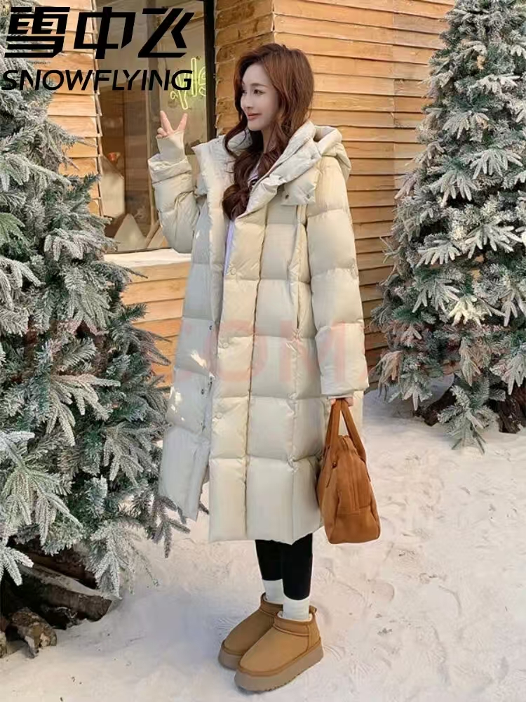 雪中飞白鹅绒羽绒服女长款加厚过膝2025年冬季新款极寒宽松抗寒高端外套